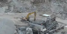 Crushing involves removing trash, wood and paper; removing metals such as rebar, using magnets and other devices, to be recycled separately; sorting the aggregate by size; crushing it using a crushing machine; and removing other particulates by methods such as hand-picking and water flotation.[7]