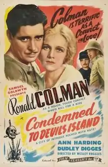 Condemned is a 1929 American black-and-white pre-Code melodrama, directed by Wesley Ruggles, and starring Ronald Colman, Ann Harding, Dudley Digges, Louis Wolheim, William Elmer, and Wilhelm von Brincken. The movie was adapted by Sidney Howard from the novel by Blair Niles.