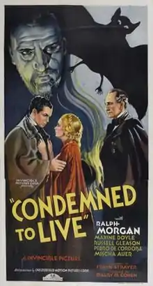 Condemned to Live is a 1935 American horror film starring Ralph Morgan and Maxine Doyle, and directed by Frank R. Strayer. The film is unusual for its time, as it approaches the topic of vampirism from a sympathetic standpoint and presents it as if it were an illness.[1]