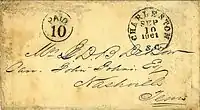 ![]() Cover mailed after the new uniform postage rate of ten cents had gone into effect, July 1, 1862. |