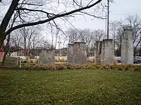 Confluence consists of 100 tons of Indiana limestone cascading in height in a 70-foot boat-like shape.[2][3][4] The second part of the artwork lies along the White River, further into the ARTSPARK.[1] Words are chiseled into the vertical stones with one statement reading "My soul has grown deep like the rivers."[3]