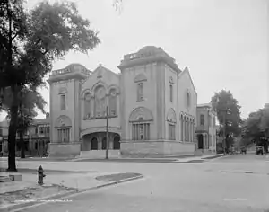 Plans for a new and larger synagogue began to take shape in the first decade of the 20th century, with the cornerstone for the new temple laid on June 6, 1906 at the corner of Government and Warren Streets. Alabama Lieutenant Governor Russell McWhortor Cunningham was the featured speaker for the event. A building fund of $25,400 had been accumulated, but the congregation president, Jacob Pollock, estimated that $5000 more was needed to complete a structure that would "honor the Jewish population of Mobile."[6] Construction continued and the new Government Street Temple was dedicated on June 21, 1907. The dedication had been delayed by a week due to the organ not being completed. Eight rabbis took part in the dedication processional: Max Heller of New Orleans; Henry Ettleson of Fort Wayne, Indiana; Bernard Ehrenreich of Montgomery, Alabama; Jacob Schwarz of Pensacola, Florida; David Marx of Atlanta, Georgia; Max Raisin of Meridian, Mississippi; Morris Newfield of Birmingham, Alabama, and Alfred Moses.[7]
