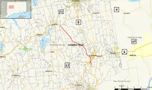 ![]() Map of Litchfield County in northwestern Connecticut with Route 254 highlighted in red | ||||
