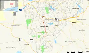 Route 316 begins at an intersection with Route 66 in Hebron and heads generally north into Andover. In Andover, it continues generally north to end at an intersection with US 6 at the town center.[1]