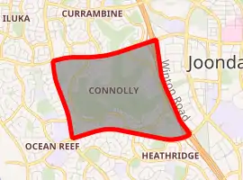 Connolly is a northern suburb of Perth, Western Australia, located within the City of Joondalup adjacent to Joondalup's central business district. It was built in the late 1980s as a golf course estate. Its eastern border backs onto the Mitchell Freeway. Many homes feature on the edges of Connolly but the homes bordering the golf course are generally larger and more affluent.