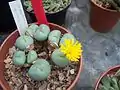 This species has rounded, flattened (truncated) bodies, covered with many idioblasts. Its flowers, which appear in autumn and winter, are unscented and yellow (flavum is Latin for “golden”[2][3]).[4]