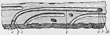 Wood is an organic material and decays under biological and chemical degradation when buried or submerged above water or soil. Wood, an organic material produced by plants, are chemically composed of: carbohydrates (cellulose and hemicellulose), lignin and other components (aliphatic acids, alcohols, proteins and inorganic substances) in a smaller amount. The most important composition of the plant is the cellulose. The cellulose accounts for the majority of the cell, about 40% to 50% of the wood's total mass. Hemicellulose represents the second most important carbohydrate and accounts for 20% to 30% of the wood's cell.[3] In cases of extreme wetness or dryness, wood can be preserved until the extreme environment is disrupted. Conservation of wooden waterlogged objects is dependent on the natural wood type and biological structure. Wood is separated into two categories, hardwoods and softwoods. The category the waterlogged wood falls into can determine the amount of porous absorption. Hardwoods are classified as angiosperms. Angiosperms are considered porous woods because of the vessel pores. Softwoods are gymnosperms and are considered non-porous because of the lack of vessel pores. The type of wood and the availability of vessel pores largely affect how conservators treat and preserve waterlogged wood.[4] Waterlogged wood objects can be found in a range of excavations sites. For example, waterlogged wood is something an archaeologist might stumble upon during an excavation either from the wood being submerged or near water or being in moist soil over time.