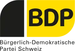 The Conservative Democratic Party of Switzerland (German: Bürgerlich-Demokratische Partei Schweiz, BDP; French: Parti bourgeois démocratique suisse, PBD; Italian: Partito Borghese Democratico Svizzero, PBD; Romansh: