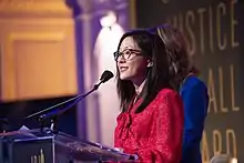 Wu is an activist regarding Asian representation in U.S. media and has expressed her support towards bringing more diversity into the film industry. Wu has shared her stories regarding times that she had been refused roles due to her racial background, and stating her hopes that her success would pave more paths for diverse representation in the U.S. film industry.[56] The #StarringConstanceWu hashtag meme, adopted by Asian-American activists, inserts Wu's image into film promotional materials in order to highlight the paucity of Asian actors in starring roles.[57][58]