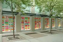 In 2006, Vancouver artist Christian Kliegel's exhibit, "Production Postings," featured hundreds of signs that film and television production units had used to direct their casts and crews to filming locales; "the general design and style of these brightly coloured signs are formulaic and a ubiquitous part of Vancouver's urban landscape," reads the exhibit description.[3] Film production companies claimed these signs as stolen property, the Vancouver police were contacted, and gallery officials were forced to take down some of the signs and replace them with photocopies. "If anything," Kliegel claimed, "the movie companies themselves practice location theft by setting a film in Vancouver and making it look like another city." Christina Ritchie, the gallery's Director, posted a letter addressed to Off-Set Rentals on the gallery's front door, telling the company's officials that she found it "sad and disappointing" that they could not appreciate Kliegel's "unique and insightful image of Vancouver."[4]