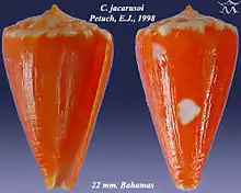 | Apertural and abapertural views of shell of Conus jacarusoi Petuch, E.J., 1998 | |