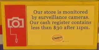 Most convenience stores have a cash drop slot into a time-delay safe to limit the amount of cash on hand. Many have installed security cameras to help deter robberies and shoplifting. Because of their vulnerability to crime, nearly all convenience stores have a friendly relationship with the local police. To reduce burglaries when the store is closed, some convenience stores have bars on the windows.