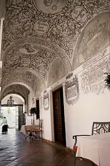 The hotel is served by the "Refectorio" restaurant under chef David Muñoz, formerly of elBulli, serving traditional Andalusian and Mediterranean cuisine.[5] The hotel also contains the "Tetería Arabe", the "Piano Bar" which serves coffee, and the "Bodegas" bar, noted for its karaoke and flamenco dancing.