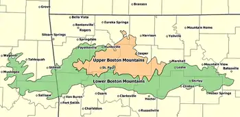 The Cookson Hills are in eastern Oklahoma. They are an extension of the Boston Mountains of Arkansas to the east and the southwestern margin of the Ozark Plateau. They lie generally between Stilwell, Sallisaw and Tahlequah. The area became part of the Cherokee Nation in the early 20th century until 1907, when Oklahoma became a state.[1]