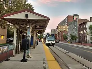 Cooper Street–Rutgers University station is a station on the River Line light rail system, located on Cooper Street in Camden, New Jersey, near the Rutgers–Camden campus. The southbound (westbound) platform is located west of 2nd Street while the northbound (eastbound) platform is east of 2nd Street in the Cooper Grant neighborhood.