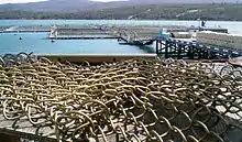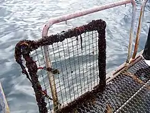 Biofouling adds enormous weight to submerged fish netting. Two hundredfold increases in weight have been reported.[24][25] This translates, for example, to two thousand pounds of unwanted organisms adhered to what was once a clean 10-pound fish pen net. In South Australia, biofouling weighing 6.5 tonnes (approximately 13,000 pounds) was observed on a fish pen net.[26] This extra burden often results in net breakage and additional maintenance costs.