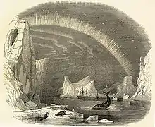 In 1818, Barrow had sent his first expedition to seek the Northwest Passage. Led by John Ross, it ended ignominiously when Ross entered the Lancaster Sound, the true entrance to the Northwest Passage, but judging it to be a bay turned around and returned to Britain.[3] At the same time, David Buchan made an attempt to sail directly to the North Pole from Britain (Barrow was a believer in the Open Polar Sea hypothesis), but returned only with the news that the pack ice north of Spitsbergen was a barrier which could not be breached.[4]