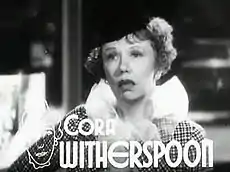 Her first film appearance was a small role in the 1931 motion picture Tarnished Lady starring Tallulah Bankhead. She played supporting roles in Hollywood films for nearly 25 years. Witherspoon played Mrs. Burns Norville in Libeled Lady with Jean Harlow and William Powell; Nesta Pett in Piccadilly Jim; Nora in Madame X; Patty in Quality Street; Countess de Noailles in Marie Antoinette; Carrie in Dark Victory; Mrs. Van Adams in The Women; Susie Watson in Charlie Chan's Murder Cruise; and Mrs. Williamson in The Mating Season. Her last film role was in It Should Happen to You (1954).[7][10]
