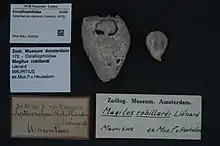 | Shell of Coralliophila robillardi (specimen at Naturalis Biodiversity Center) | |