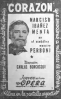 Corazón is a 1947 Argentine film directed by Carlos F. Borcosque and starring Narciso Ibáñez Menta.[1]