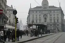 Cordusio is a station on Line 1 of the Milan Metro in the busy, commercial Piazzale Cordusio. It was opened on 1 November 1964 as part of the inaugural section of the Metro, between Sesto Marelli and Lotto.[2] The station is near the piazza del Duomo, and the long via Dante, which leads up to the Castello Sforzesco.