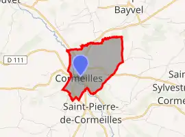 Cormeilles is located in the north-western part of the Eure department, on the small river Calonne, which empties into the Touques. Cormeilles is part of the Pays d'Auge.