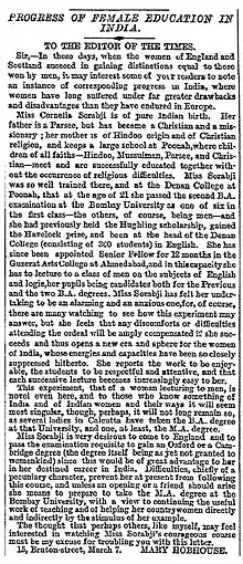 - "Cornelia Sorabji |Britain". www.open.ac.uk. Archived from the original on 7 November 2017. Retrieved 10 November 2017.