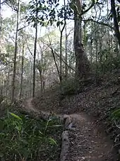 A protected nature conservation area was created by the local government council from land purchased between 1999 and 2010. Located in the north-west of the suburb, the 196-hectare (480-acre) nature refuge consists of the former Cornubia Forest Park to the south and land known as the Cornubia Escarpment in the north. It is managed as part of Australia’s National Reserve System with objectives that include both conservation of flora and fauna, and recreation such as bushwalking and mountain bike riding. The refuge is also managed under a Koala Nature Refuge Agreement with the state government. The tall open forest ecosystem of blackbutt (Eucalyptus pilularis) and the brown thornbill (Acanthiza pusilla) in the area are described as endangered.[11]
