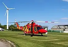 The Cornwall Air Ambulance Trust is a charity that provides a dedicated helicopter emergency medical service (HEMS) for Cornwall and the Isles of Scilly.[2] The service also has two critical care cars that operate when the helicopter is unable to fly.[3] Together they attend about 1,100 incidents per year.[3] As of December 2018, the helicopter service had flown over 28,000 missions since 1987.[4]