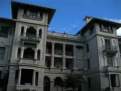 It may have been the first building of a Spanish-derived architectural style. Other houses of the time were generally of Victorian and European architectural styles. Other architects and designers found that the Spanish style is more appropriate for Colorado's climate. The three-storied building has 21 apartments, a roof garden and full basement. A former ballroom has been in the north tower has repurposed as a penthouse apartment. The other towers were used as "summer gardens". In 1901, the building was described as "the handsomest structure on the Hill" by the Rocky Mountain News.[2]
