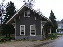 The station, a Stick style wood-frame structure, was built by the Housatonic Railroad between 1865 and 1875 and, as with the rest of the railroad, was acquired by the New York, New Haven and Hartford Railroad in 1892.[2] The New Haven Railroad was acquired by the Penn Central Railroad in 1969, which went bankrupt by 1970. The station was added to the National Register of Historic Places on April 26, 1972, as Cornwall Bridge Railroad Station.