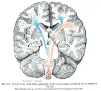 ![]() Dissection showing the course of the cerebrospinal fibers. | |