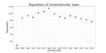 Correctionville was platted in 1855.[5] It was so named from its location on a surveyors' correction line, an east-west line between baselines required because of the Earth's curvature.[6] A post office called Correctionville has been in operation since 1862.[7]
