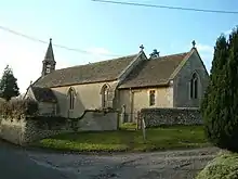 There may have been a church on this site in the 12th century.[6] The present building has a 15th-century bell-turret with a short spire – described by Pevsner as "impressive"[7] – but the rest was rebuilt in 1881 in coursed rubble with stone dressings; the chancel is from 1911. Inside is a 15th-century rood screen and a 17th-century oak pulpit.[4]