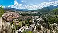 Corte Panorama created from three images recorded at the bridge over the Restonica, pont vieux