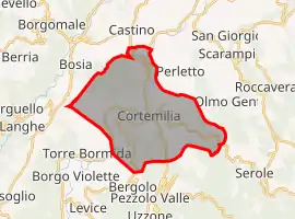 Cortemilia borders the following municipalities: Bergolo, Bosia, Castino, Perletto, Pezzolo Valle Uzzone, Serole, and Torre Bormida.