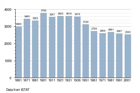 - "Superficie di Comuni Province e Regioni italiane al 9 ottobre 2011". Italian National Institute of Statistics. Retrieved 16 March 2019.