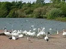 The main feature at this country park are the two large lakes divided by a bridge on the main footpath 'mile road'. The country park has a variety of habitats covering over 100 hectares of land and water, with some areas designated a Site of Special Scientific Interest (S.S.S.I) protecting the rare and diverse plant and animal species.[1]