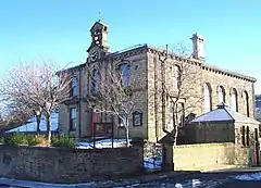 The village has a primary school on Cottingley Moor Road, rated Good by OFSTED,[25] and a secondary school, Dixons Cottingley Academy.[26] Cottingley has a town hall, now grade II listed, which celebrated its 150th anniversary in 2015.[27][28] The town hall was used for religious services until the first St Michael and All Angels church was built in the 1870s.[29]