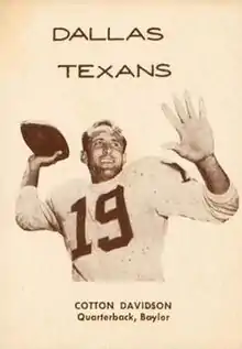 Davidson was selected in the first round of the 1954 NFL Draft by the Baltimore Colts. In addition to playing quarterback, he also was a placekicker and punter. An original Dallas Texan, Davidson was the first starting quarterback for the franchise.