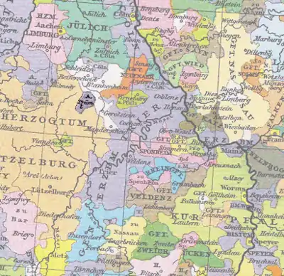 In the 12th to 15th centuries the counts of Vianden were the mightiest lords of the area between the rivers Rhine, Mosel and Maas. Their territory was in modern Vianden canton, Luxemburg and Bitburg-Prüm, Germany.