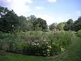County Farm Park has a wide variety of different gardens, including an octagonal perennial flower garden, a "native grasses display" on the Outer Loop trail, and a "Kids & Trees" nursery near the children's playground.[14] It also includes the Project Grow Community Gardens, which consist of 84 total plots in two sections available for rental by individuals.[15] Project Grow's gardens at County Farm Park constitute the oldest and largest part of its network, which in total consists of 15 individual sites and over 350 separate plots throughout the Ann Arbor area.[15][16] The Project Grow gardens at County Farm Park have been in existence since 1972, when they emerged as a direct product of the environmental and community gardening movements of the 1970s, although they were also substantially influenced by the world war-era tradition of "victory gardens".[16]