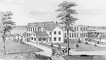 The land that now constitutes County Farm Park was bought by Washtenaw County in 1836 from local resident Claudius Britton for $1,200.[1][7] In order to comply with an 1830 Michigan Territory law requiring every county in the territory to construct and operate a poorhouse, Washtenaw County opened the County Poor House on the site in 1837.[1][2] The Poor House was home to a diverse group of impoverished people, including those with physical and mental disabilities, injuries, illnesses, and those who were transient or simply unlucky.[7] The Poor House was operated by a "keeper", a local man with a background in agriculture who lived on site, while his wife was expected to cook for the residents. The Poor House was intended to be a self-sustaining working farm on which the residents covered their living expenses by growing and selling crops and livestock, although such sales never covered all of its costs except for a few years during the Civil War. The farm consisted of gardens used for growing vegetables and grains, orchards of apple, peach, and pear trees, and livestock including pigs, cattle, sheep, and chickens.[2]