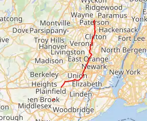 County Route 509 (CR 509) is a county highway in the U.S. state of New Jersey. The highway exists in two segments– one 0.95-mile (1.53 km) unsigned segment exists in northern Middlesex County while the signed mainline extends 25.78 miles (41.49 km) from North Avenue (Route 28) in Westfield to Straight Street (CR 504) in Paterson.