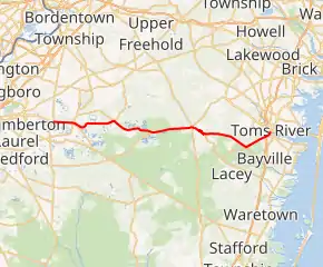 County Route 530 (CR 530) is a county highway in the U.S. state of New Jersey. The highway extends 31.21 miles (50.23 kilometers) from US 206 and Route 38 in Southampton Township to Water Street (Route 166) in Toms River Township.