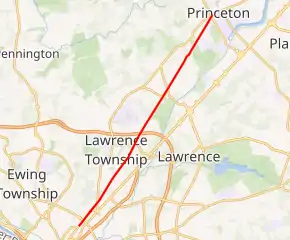 CR 583 begins at the border of Trenton and Ewing Township along two-lane undivided Princeton Avenue (southbound US 206) just northeast of the Prichard Street intersection. From the southern terminus, the road runs northeast concurrent with southbound US 206 through residential and commercial areas, forming the border between Ewing Township to the northwest and Trenton to the southeast. The road crosses CR 622, widening to four lanes before entering Lawrence Township at the CR 613 intersection. In Lawrence Township, Princeton Avenue comes to the CR 645 intersection that provides access to the Brunswick Circle and US 1 Business. Past here, the road intersects the northbound direction of US 206 at Lawrenceville Road, and southbound US 206 splits from CR 583 to join with the northbound direction.[2][3]