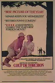 Coup de Torchon (also known as Clean Slate) is a 1981 French crime film directed by Bertrand Tavernier and adapted from Jim Thompson's 1964 novel Pop. 1280. The film changes the novel's setting from an American Southern town to a small town in French West Africa.[2][3] The film had 2,199,309 admissions in France and was the 16th most attended film of the year.[4] It received the Prix Méliès from the French Syndicate of Cinema Critics as the best French film of 1981.