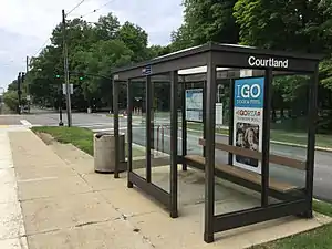 Courtland is a station stop on the RTA light rail Green Line in Shaker Heights, Ohio, located at the intersection of Courtland Boulevard, Manchester Road, Montgomery Road and Shaker Boulevard (Ohio State Route 87).