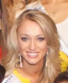 Garrett was Virginia's representative at the Miss America 2015 pageant in Atlantic City, New Jersey, in September 2014.[10][17][23] She was the first runner-up to Miss New York Kira Kazantsev for the national title and would have taken over as Miss America if anything had interrupted her reign.[22][24][25] Garrett earned a $25,000 scholarship prize as first runner-up.[26]
