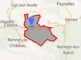 The village is situated in the high valley of the Aude, on the river Sals between Arques and Couiza.